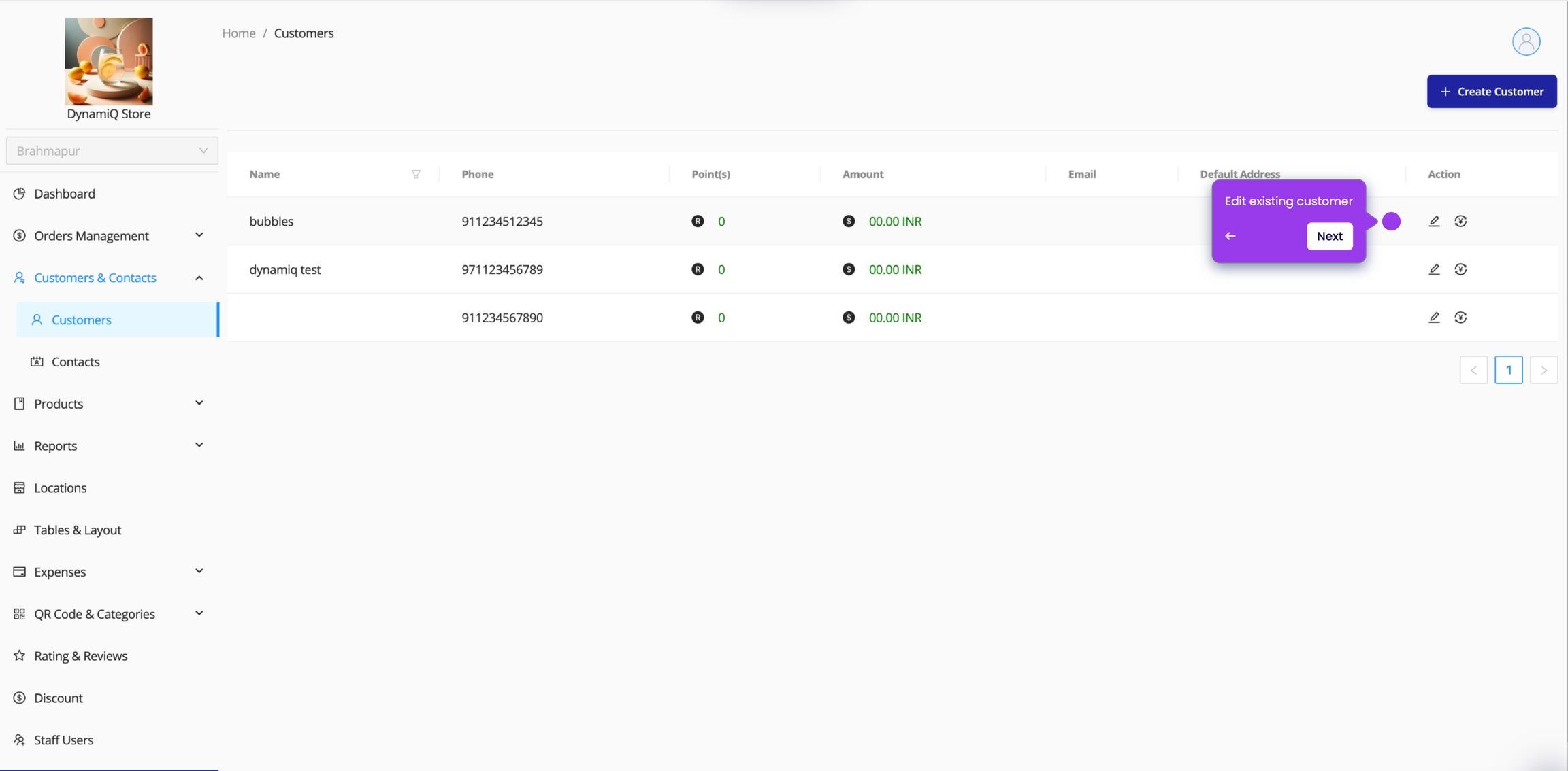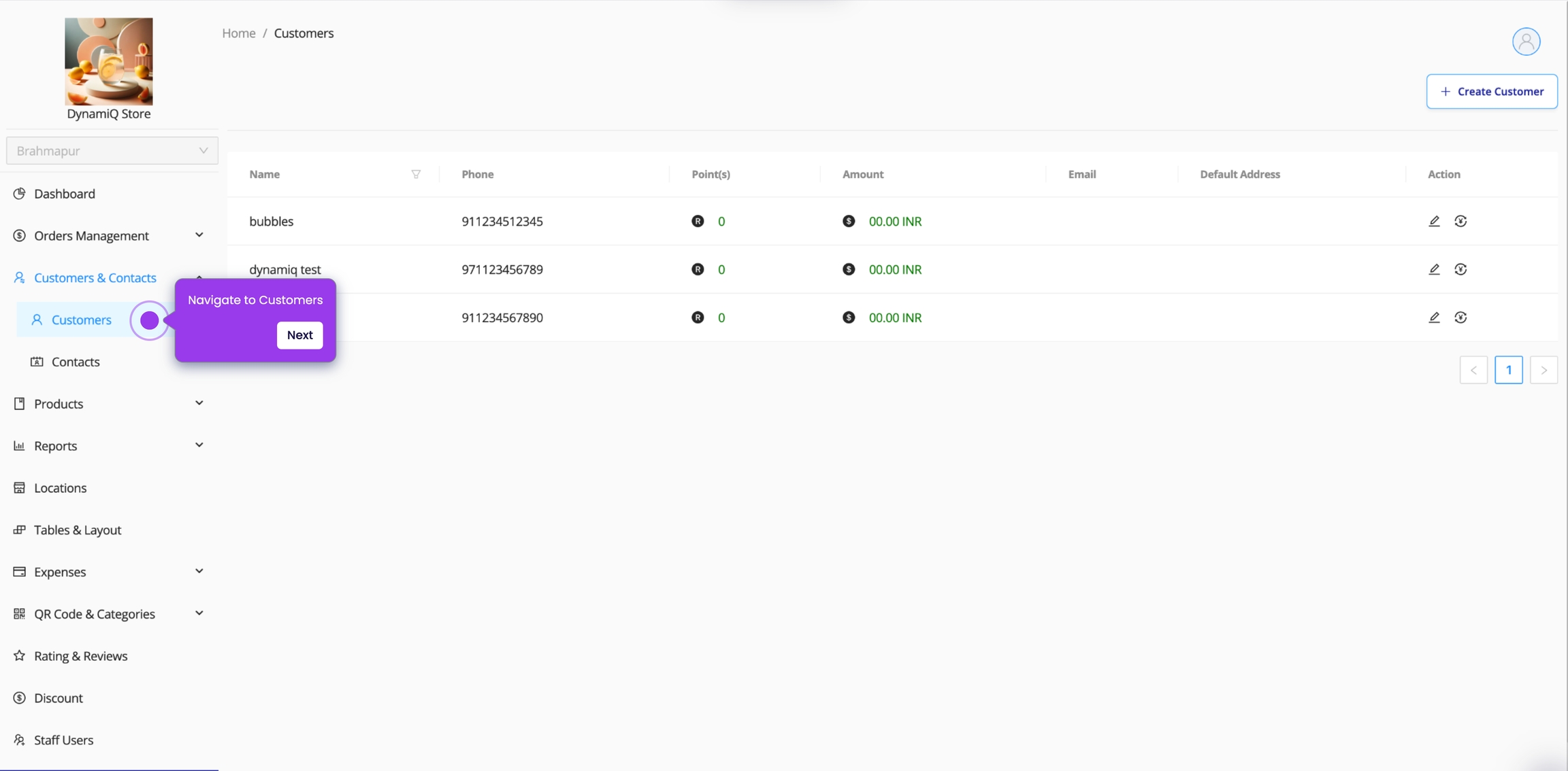 The Customers section of the application allows you to manage your customers. You can view a list of all your customers, search for specific customers, view customer details, and perform various actions on customers.
