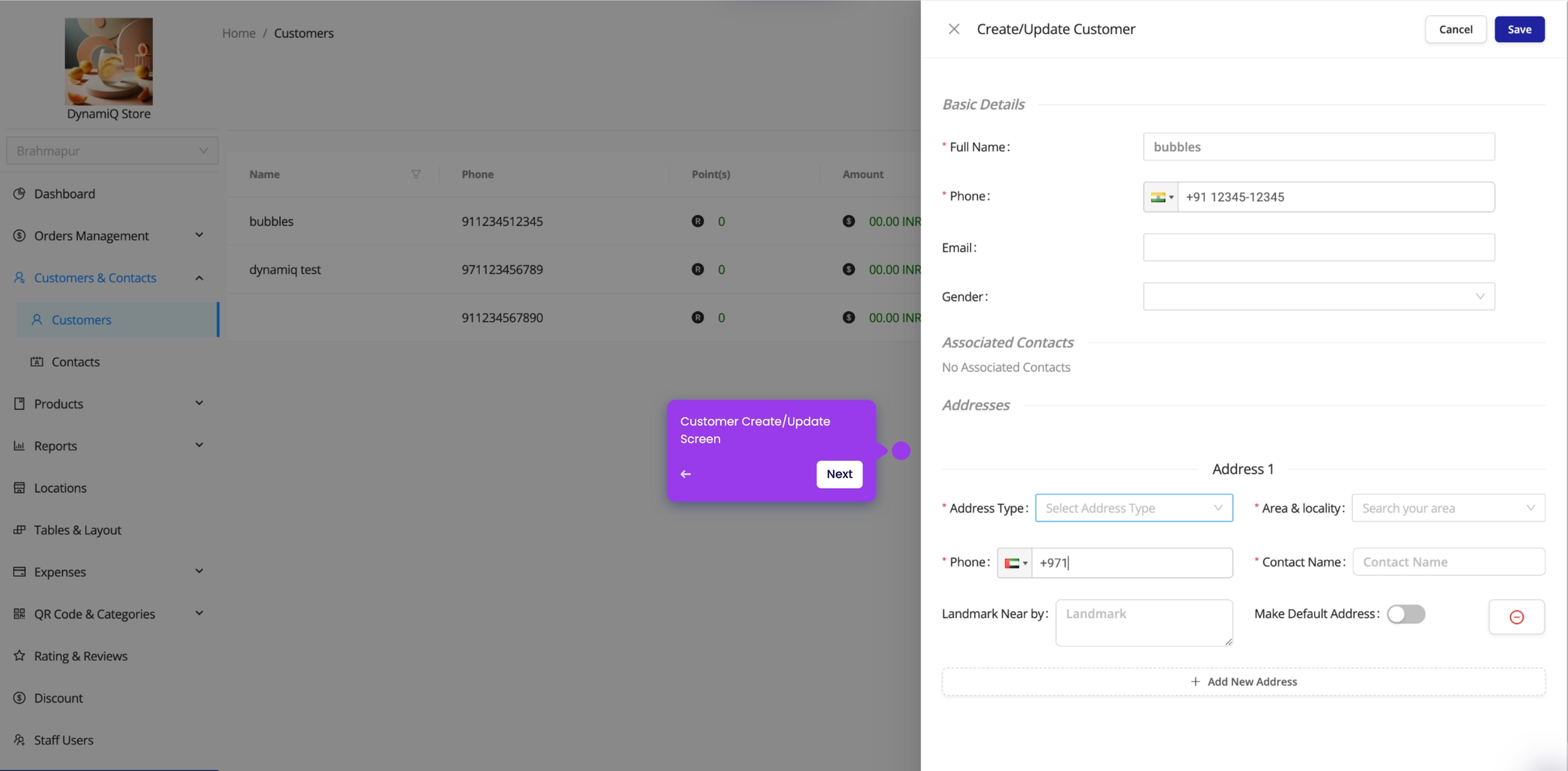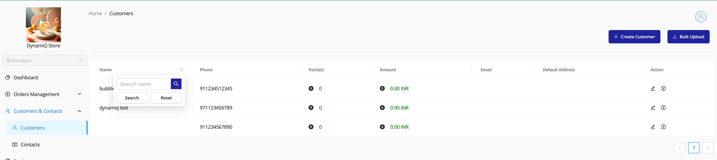 Search bar that allows you to search for specific customers by name, email, phone number, or address.