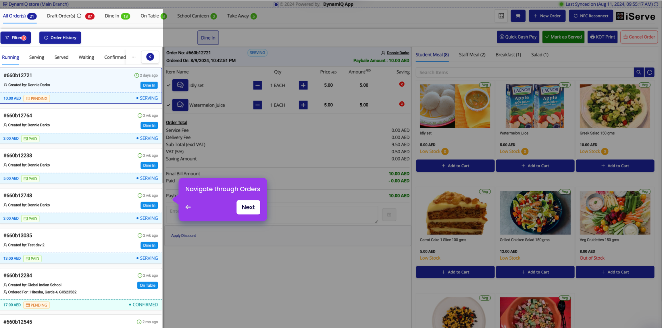 Navigate through Orders